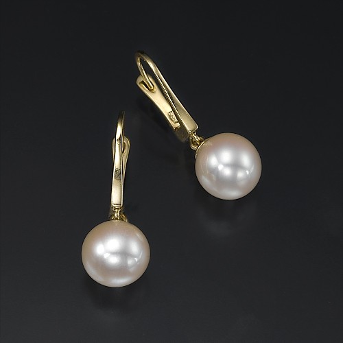 עגילי פנינה תלויים ,משובצים בזהב צהוב 14K, ופנינים בקוטר 9 מ"מ