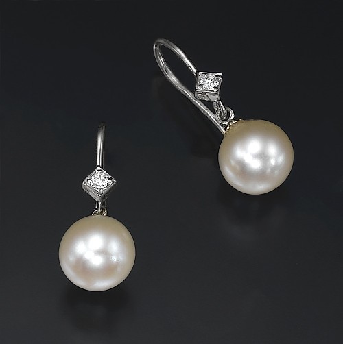עגילי פנינה משובצים בזהב 14K עם יהלומים איכותיים,ופנינים 9 מ"מ